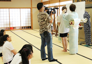 みなさん、撮影への協力ありがとうございました。留学生も熱心に参加し、かわいいゆかた姿ができました。着物を英語で語れる日本人が増えるとよいですね。